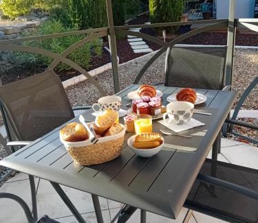 Chambres d'hôtes Des couleurs et des Mots is a recently renovated bed and breakfast in Villeneuve-de-Berg where guests can make the most of its outdoor swimming pool, private beach area, and garden. The bed and breakfast, set in a building dating from 2023, is 20 miles from Pont d'Arc and 20 miles from Ardeche Gorges. There's a sun terrace and guests can use free Wifi and free private parking. Towels and bed linen are offered in the bed and breakfast. The accommodation is non-smoking. A continental breakfast is available at the property and includes fresh pastries and juice. There is an on-site coffee shop. For guests with children, the bed and breakfast features a baby safety gate. Guests at Chambres d'hôtes Des couleurs et des Mots can enjoy mini-golf on-site, or go cycling or canoeing in the surrounding area. Casino de Vals-les-Bains is 13 miles from the accommodation, while International Sweets Museum is 19 miles from the property.