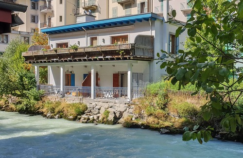 The flat is tucked back from the main street, facing the beautiful glacially fed Arve river. The private balcony has views of Mont Blanc and catches the morning and early afternoon sun. Includes a fire place and wireless internet. Private ski locker.