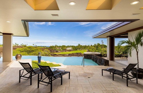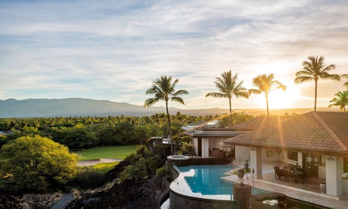 Perched above Mauna Lani’s famed North Course and overlooking the endless blues of the Kohala Coast, Champion Ridge 7 is a spectacular four-bedroom five-and-a-half-bathroom luxury estate that redefines Big Island luxury. Designed for up to eight guests, this modern Hawaiian retreat balances architectural elegance with effortless indoor-outdoor living for a one-of-a-kind island experience.