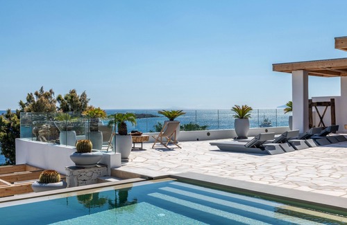 A lovely property located just a few steps away from the world-famous beach of Psarou. Villa Channel I has been very recently renovated and refurbished to a stylish and luxurious property. It consists of six bedrooms ensuite as well as an open plan kitchen, sitting and dining area with direct access to the pool and lounging areas. The pool and terrace have a premium view overlooking Psarou bay so that the guest can oversee all the real action of Mykonos while relaxing on a sun lounger. This sought-after and modern villa is ideal for anyone who favors liveliness and proximity to the sea.