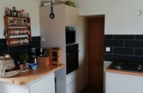 Family house for 5 generations, consisting of 2 L-shaped buildings. The first includes the kitchen, the dining room, a WC and a small utility room + 1 very small bedroom under the slope above the kitchen. The second includes the living room, the 5 bedrooms, the bathroom, the shower room and a toilet. The enclosed garden is surrounded by walls and guarantees great tranquility. In the adjoining meadow there are 4 small brown Ouessant sheep but access is private.