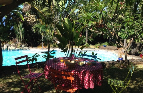 The rooms are very spacious (18m2 kitchen, 40m2 living room). The garden is very wooded (letchis, mango, avocado, ylang ylang, patchouli, jasmine, vanilla, hibiscus ...).