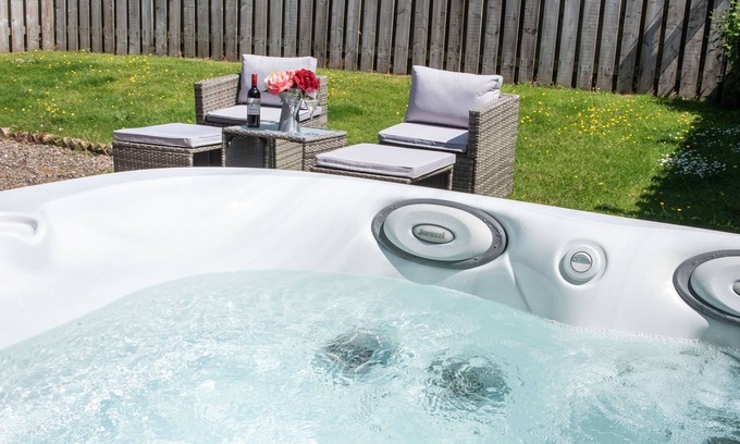 All utilities, logs, bed linen, bath robes and slippers and towels provided. Private parking. Enclosed garden with table and chairs and hot tub.