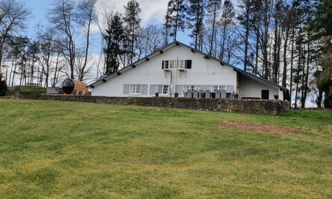 This spacious pet-friendly villa in Érezée offers a peaceful retreat for families or groups in the heart of the Ardennes. With seven bedrooms and two bathrooms, it comfortably accommodates guests seeking relaxation and nature. The open-plan living and dining area features a satellite flatscreen TV and stereo system, while the fully equipped kitchen includes a 5-ring induction stove, oven, microwave, and dishwasher. A private sauna and bubble bath add a luxurious touch, and the 2-hectare garden with terrace, barbecue, and boules court invites outdoor enjoyment.