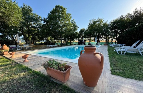 The apartment is part of an old farmhouse typical of Umbria and Tuscany, elegantly furnished and equipped with all amenities, situated in the heart of the green countryside just a few kilometers from Lake Trasimeno.