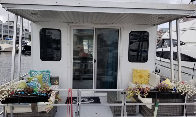 Skip the hotel and do something really unique and fun! Experience Boston from the perspective of your own floating home! Nestled in a protected marina in Boston Harbor, our houseboat is fully equipped with all the comforts and amenities of home!