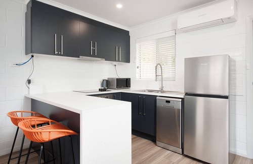 The unit has been completely renovated throughout with a chic modern kitchen equipped with dishwasher and everything you need to cook up a storm, a functional bathroom combined with laundry complete with front loader washing machine and dryer, and a roomy bedroom with comfy queen bed. A cosy back patio area, trendy floorings, sliding barn door, high speed wifi, fluffy towels, quality linen and splashes of orange finish this fashionable space for guests.There is split system heating and cooling in both the lounge and bedroom areas.Park your car in the private undercover carport and walk everywhere. Strictly no smoking in or around the unit, includes the back patio area.Book Charlie's today :-)