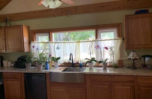 Downstairs there is a full dining room with views of the backyard and seating for 6 at our beautiful dining table. The full kitchen is just steps away with ample space to cook if you like. Down the hall is the downstairs bathroom with stand up shower with lots of sunlight. The first bedroom with 2 twin beds is located on the first floor with lots of space to relax. The living room has a beautiful flat screen tv and lots of sitting space to enjoy your stay.