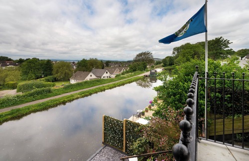 Charlotte's View is a stunning cottage that backs onto the Lancaster Canal, offering beautiful views over Morecambe Bay and the famous Lake District peaks. The comfortable living room features a charming fireplace and a wood-burning stove.
