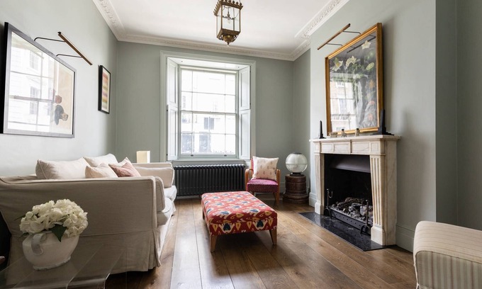 In the heart of leafy Pimlico sits this exquisite two-bedroom London home. Classic interiors filled with simple-yet-elegant furnishings complemented by original features such as hardwood flooring and ornate fireplaces elevate this sublime home to another level. Welcoming up to four guests, it's a light, bright, characterful home with that most desirable of London features - a private garden. Pimlico has always had a reputation for being one of the more gentile neighbourhoods of the capital and is home to some of London's wealthiest residents. When Pimlico was designed as an extension of neighbouring Belgravia, priority was given to green spaces and gardens. That has made this Regency enclave a more sedate and tranquil spot, despite its proximity to Victoria and Westminster. The Royal Parks, Sloane Square and the River Thames are all within easy reach, and the area is home to a thriving café community where bistros and delicatessens line the streets. Buckingham Palace and Big Ben are a stroll away - and, for cricket fans, the Oval is just across the river - but don't miss Tate Britain, probably Pimlico's biggest draw. Charlwood Place captures the suave spirit of Pimlico perfectly. Effortless taste and a relaxed, casual fusion of modern and traditional influences make it feel like a real family home. The sitting room is divided into separate nooks, with a home office in the alcove. The kitchen and dining area are flooded with light thanks to a large skylight and patio doors that open onto a balcony and a spiral staircase leading down to the garden. On the lower level, you’ll find two delightful bedrooms, with a king-size and double bed. Both are accompanied by ensuite bathrooms, tastefully decorated in cool greys and neutral tones to create a restful atmosphere. The stand-out feature of Charlwood Place is the garden. Designed in a continental style and also accessed via the master bedroom as well as the signature spiral metal staircase, this is a private and sunny spot for unwinding at the end of the day. There is a cosy al fresco dining area for those warm summer evenings when you simply want to spend time with friends, a bottle of wine, and some nibbles. With Pimlico underground station just five minutes away, Charlwood Place is the ideal choice for a leisurely city break in one of the most historically significant cities in the world.