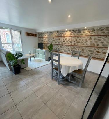 Charmant Appartement T3 offers accommodations in Toulouges, 24 miles from Queribus Castle and 29 miles from Peyrepertuse Castle. The air-conditioned accommodation is 21 miles from Collioure Royal Castle. Free Wifi is available throughout the property and Stade Gilbert Brutus is 5.6 miles away. The apartment is composed of 2 bedrooms, a fully equipped kitchenette, and 1 bathroom. A flat-screen TV is offered. The accommodation is non-smoking. Perpignan - Rivesaltes Airport is 5.6 miles from the property.