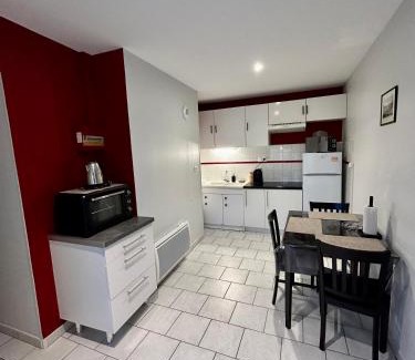Charmant studio de 50 m2 offers accommodations in Chaumont, 16 miles from Arc-en-Barrois Golf Course. With free Wifi, this 1-bedroom apartment offers a flat-screen TV, a washing machine, and a fully equipped kitchen with an oven and microwave. Towels and bed linen are featured in the apartment. For added privacy, the accommodation features a private entrance. Dole-Jura Airport is 89 miles away.