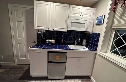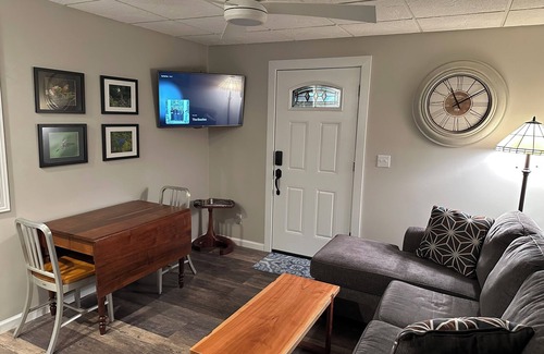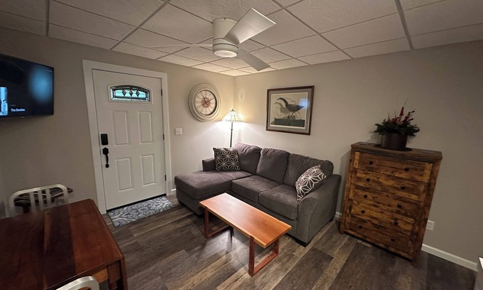 This 1-bedroom apartment in Ellwood City is perfect for your escape. The lovely space includes a cozy living room with a sofa bed, a bathroom with a rain shower and bidet, and essential amenities like WiFi and heating, and AC. Kitchenette includes a micro wave, small refrigerator, coffee maker. Outdoor grill. Guests can relax and unwind in this superb retreat, whether exploring the city or simply enjoying a quiet evening in. A sampling of nearby attractions include Stonewall Golf Course, McConnell's Mill, Moraine Sate park, and Pittsburgh International Race Complex. Large parking lot to accommodate any size vehicle. Outdoor activities include a bocce court and fire ring. Conveniently located adjacently to Shop-N-Save. We're happy to assist with any questions while you stay at our apartment.