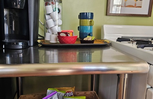 Note-cottage is located on an alley. Access to the property is through a private gate on the alley. Parking for one small car is allowed next to cottage. sleeps 2