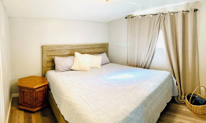 This delightful cottage is an excellent choice for guests seeking a welcoming, quaint, and private retreat. This is a private dwelling and stand alone structure with no shared walls with any the other property on the lot. This place has a cozy bedroom featuring a Posturepedic king bed with Premuim linens and pillows. There is a charming living room with a sofa bed, smart tv, and oversized coffee table, end much more. This property offers a comfortable stay with much more space than a hotel room! Enjoy the convenience of amenities like a washing machine, AC, and WiFi. Relax in the bathtub or unwind in the lovely outdoor space. Feel free to reach out to us during your stay - we're happy to suggest local spots to check out. There is plenty of room to park uhauls, big trailers, and campers!