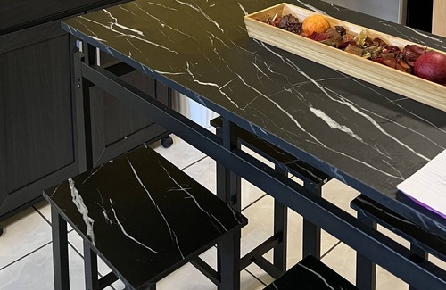 Fully Equipped Kitchen: Prepare delicious meals in the well-appointed kitchen, complete with a full refrigerator, stove, and bar-height table with seating for 4.