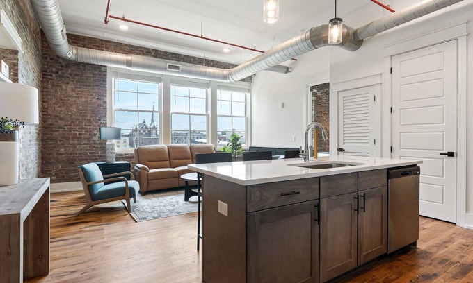 Welcome to The Laboratory, a bright 1-bedroom suite at Southern Blue with large windows and sweeping downtown views. Once part of a historic schoolhouse, this cozy space blends vintage charm with modern comfort. Perfect for relaxing or inspiring ideas, it's in the heart of McMinnville, close to local sights, eateries, and shops. A unique retreat where history, comfort, and scenic beauty come together.