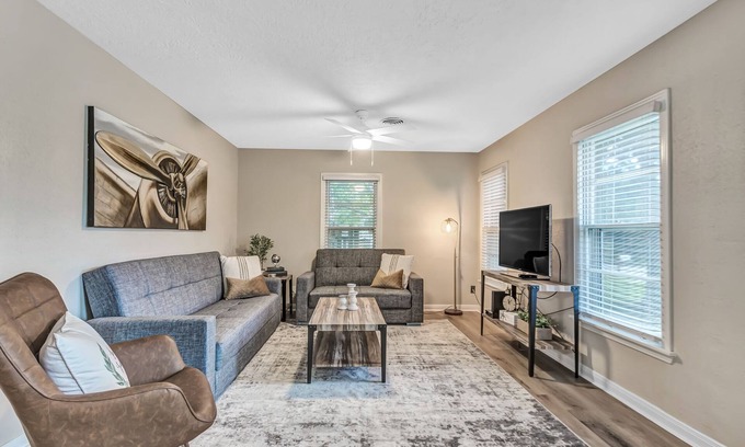Your family will be close to everything when you stay at this charming home located less than 1 mile from HEB, CVS, Legends Event Center & Top Golf; less than 2 miles from College Station's premier community center, Century Square; 2 miles from Texas A&M campus; 5 miles from Easterwood Airport. Recently updated with new paint, floors , fixtures and countertops. The home features a queen bed as well as a twin and bunk bed twin/full combo. Fully furnished including a TV and Wi-Fi access. Fully fenced backyard and pet friendly property. You'll have all you need for a comfortable and convenient stay in College Station!