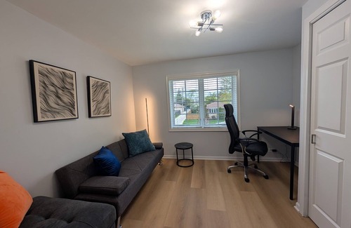 Make yourself at home in this remodeled 2-bedroom, second floor Franklin Park retreat. This amazing apartment features 1 king bed, 1 queen bed, a cozy living room with a full bed, and a convenient office space with another full bed. Washer and dryer in the apartment. Enjoy the fantastic amenities like a AC, WiFi, and more. Fully equipped kitchen with dishwasher. Relax in the shower or get ready with the provided hair dryers. We hope you enjoy outside deck and what our place and Franklin Park has to offer, restaurants, parks and public pool. Close to public transportation and O'Hare.