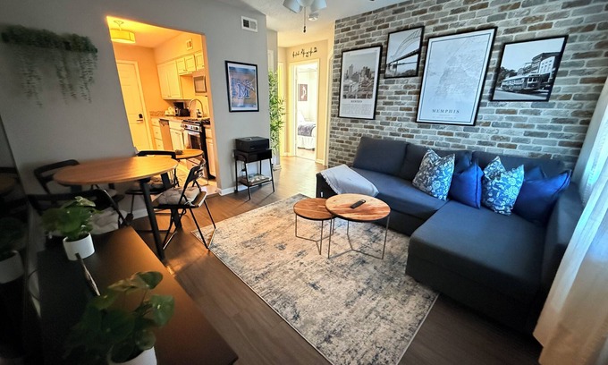 Discover the beauty of Memphis from this enchanting 2-bedroom apartment. With 2 queen beds and a cozy living room with a sofa bed, this space is perfect for a group of friends or a small family. Enjoy the soothing ambiance of the space, complete with modern amenities like WiFi, AC, and a washing machine. The bathroom comes equipped with a hairdryer for your convenience. We look forward to welcoming you to our place.