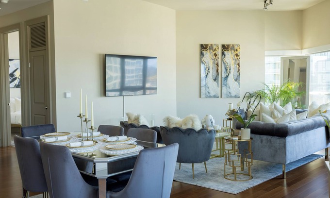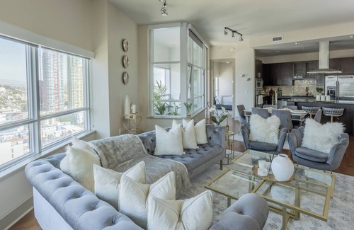 Discover luxury in this spacious 2-bedroom, 2-bath downtown San Diego retreat. Enjoy contemporary decor, abundant natural light, and a cozy living area perfect for relaxing. The kitchen features top-tier appliances and a dining area for shared meals. Both bedrooms offer comfort and tranquility, with the master boasting an en-suite bathroom. Building amenities include a pool, gym, lounge, and secure parking. Ideal for a stylish urban escape!