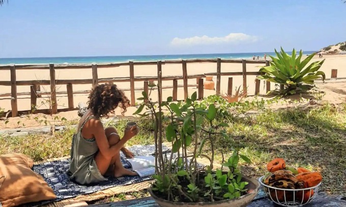 Is a beach house with an incredible view of the Indian Ocean. It has 2 bedrooms, 1 living room, 1 kitchen and 1 bathroom. It can accommodate up to 6 people, when we transform the living room into a bedroom. The bedrooms have AC and fans and in the living room there is only one fan. The kitchen is equipped with a gas stove and oven, refrigerator, microwave, toaster, blender, blender, water filter (8L), kettle and Delta espresso machine, among other accessories. Outside there is a grill.