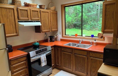 Discover the beauty of San Juan Island from this 2-bedroom cabin. Located on a private lot with a large yard surrounded by trees, you're just steps from hiking trails and a few minutes from wonderful Roche Harbor. The cozy interior features 2 queen beds, a bathroom with a hair dryer, large windows with bay seats, and convenient amenities like WiFi. It's a nice and soothing retreat for guests looking to relax and recharge. Whether you're exploring the island or simply enjoying a peaceful evening in, this wonderful cabin is the perfect home base for your getaway. It's easy to see why you'll be able to unwind at our place.