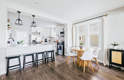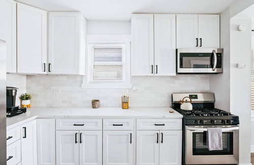 Welcome to our charming 2-bedroom apartment in tranquil Jefferson Park! Nestled on a quiet street, this first-floor unit includes a full kitchen, one bathroom, and a dedicated workspace. Enjoy the shared backyard with a grill, outdoor dining area, and fire pit. Ideal for a relaxing retreat in a serene neighborhood close to local attractions and amenities. Street parking is readily available. Within one mile of the CTA/Metra station.