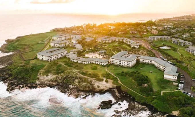 The Point at Poipu offers oceanfront elegance with accommodations featuring spacious balconies overlooking the garden or the ocean. Relax and enjoy the separate sitting areas and fully equipped kitchens. The master bath features twin sinks, separate shower and deep soaking bath. Additional in-room amenities include entertainment center, laundry facilities with washer and dryer and internet access.