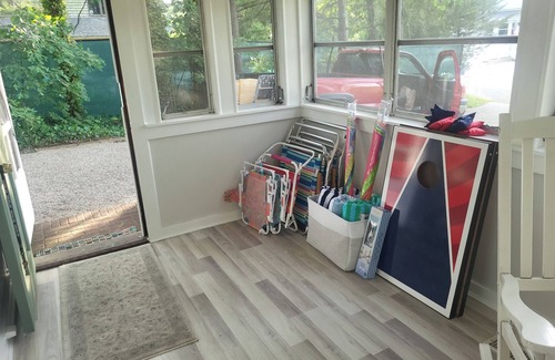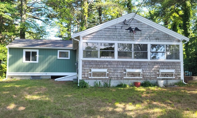 Located in Manomet, a quaint part of Plymouth, this cottage is a dream. Just a 7 minute walk to Manomet Beach. We supply beach towels, chairs and umbrellas and a wagon for your use. With 2 bedrooms featuring a king and queen bed, 2 bathrooms, and living room with an additional 2 twin day bed couch and enclosed porch. With the cottage having full air conditioning, this property offers a pleasant and perfect stay for guests. Enjoy amenities like a hair dryer, washer and dryer, AC, and WiFi. Spend time outside playing cornhole and enjoying the outdoor living space, including picnic table, grill and large sectional with propane fire table surrounded by towering pines in this quiet residential neighborhood. Minutes away from the beaches, restaurants, coffee shops, ice cream, groceries and historical Plymouth sites. Also nearby, golf, fishing, whale watch and walking trails. Experience the magic of Plymouth at our cottage.