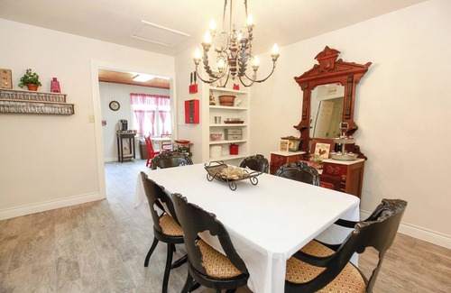 Location, location! 2-bedroom cottage on historic Main St. This nice property features 1 king bed, 1 queen bed, 1 bunk bed, 3 sofa beds, 2 pull-outs with 2 full bathrooms. Perfect for a group getaway. Enjoy easy access to boating/lake activities, shopping, cafes, live music, cavern tours, year-round events or relax on the porch in the heart of the Texas Hill Country in Marble Falls. Just steps to shopping and restaurants.