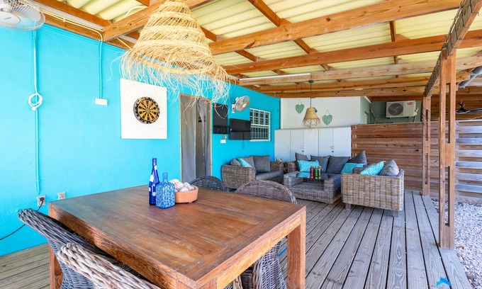Your home away from home in Kralendijk with 2 bedrooms. Centrally located, a few hundred meters away from the supermarkets and Kralendijk center. The outdoor terrace is the perfect place to chill and enjoy the caribbean breeze. Rinsing dive, snorkel or wind surf gear is possible on the terrace.
