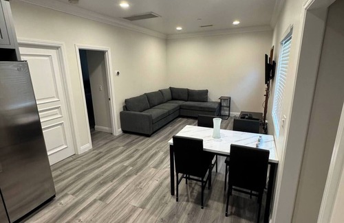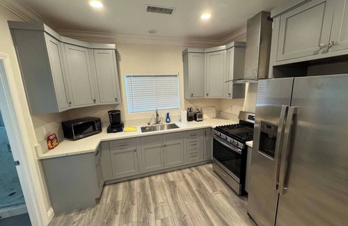 Experience Los Angeles like a local in this 2-bedroom house. The cozy living room offers a quaint atmosphere, perfect for relaxing after a day of exploring. With 4 full beds and 1 twin bed, this soothing retreat can accommodate small groups or families. Enjoy the beautiful natural light that fills the space, creating a warm and inviting ambiance. Close to all the LA hot spots and within 15 minutes of the airport this lovely home is practical and comfortable.