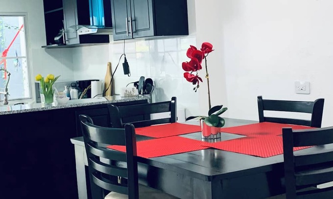 Discover the beauty of Santa Ana from this 2-bedroom house. The superbly designed space features 2 queen beds, a cozy living room with a sofa bed, and 2 bathrooms equipped with hot water. Enjoy modern conveniences like WiFi, AC, a washing machine, heating, and an iron. Experience the magic of Santa Ana at our house.