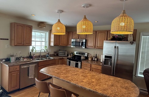 Brand New Listing! This delightful house on Schroon Lake in the Adirondacks offers a tremendous experience for guests. With 2 bedrooms including a king bed, queen bed, and bunk bed, plus plus a large bonus room with a queen bed sofa there's plenty of space for everyone. Enjoy the terrific living room with a fireplace for extra comfort. That leads out to a wrap around deck with tins of extra outdoor living space. Our 50 ' of lake frontage with a seasonal dock, deck above with chairs , kayak & paddle boards to enjoy. AC, WiFi, a generator and a washing machine / dryer are just a few of the amenities provided. Our place will help you feel at home while you're traveling in Adirondacks.