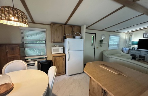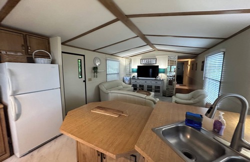 Consider this Ranch Mobile Home your retreat away from home while you visit Meredith in a NO wake zone. This wonderful retreat features 2 cozy bedrooms(sleeps 4) with a queen bed and a full-size bed. A fully equipped bathroom with a hair dryer and all the essentials you need for a soothing stay. Full Kitchen with sink, stove, microwave, and fridge with essentials for cooking or reheating your restaurant leftovers. Enjoy the gorgeous surroundings and modern amenities like WiFi, heating, and AC. Experience the magic of Meredith at our waterfront retreat. Shared Water Access - Contact me for Dock availability. Also Washer and Dryer.