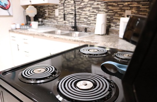 Guests are welcome to use the entire space. Kitchen and laundry, coupled with modern amenities will make you feel at home. This space is fully furnished with stylish furnishing and smart TV's. Enjoy the warm ambiance, comfy rooms and even a workspace with a printer. Come relax on the amazing front porch.