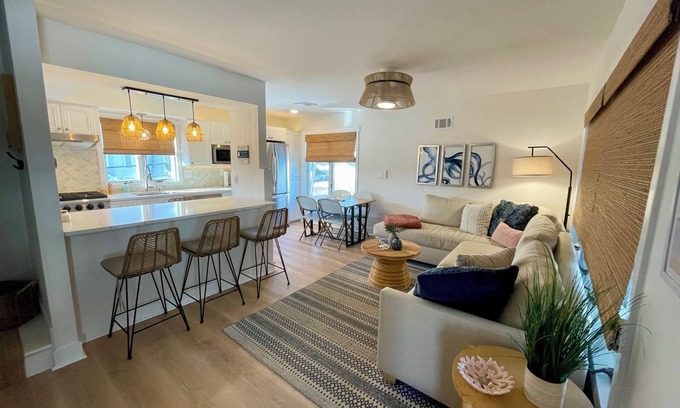 Welcome to your beach getaway at the Jersey Shore! This beautifully maintained 2-bedroom, 1 bath townhome is located just one block to the beach, offering the perfect blend of comfort, convenience and coastal charm. This welcoming townhome features a cozy living room with a bonus sofa bed, a king bedroom and a double twin bedroom with hideaway trundle. The newly renovated kitchen offers all the amenities you need for a stay at the beach. Two outdoor deck seating areas await to feel the ocean breeze. Short walk to boardwalk and restaurants. Also enjoy the quaint shopping and dining of Lavalette and Seaside Park. Perfect for a couple or family of 4-5 or small group.