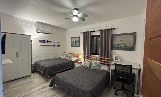 Escape to Palmar de Ocoa for a soothing retreat. This 2-bedroom oasis features a queen bed and a full bed, perfect for a small group of guests. With 2 bathrooms equipped with a shower and bidet, you'll feel right at home. Relax in the serene surroundings and take advantage of amenities like AC, WiFi, and a washing machine. Fall in love with Palmar de Ocoa and enjoy the magic it has to offer.