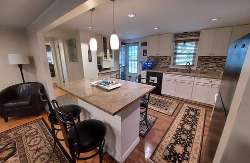 Narragansett, cozy beach cottage located in a family neighborhood. Unwind with loved ones and friends on the brand new deck and let the kids play in the fenced in back yard with no worries. Open concept living invites conversation and togetherness. Enjoy local establishments within walking distance, such as Baron's Ice Cream (formerly Brickley's), Fuel Coffee Bar and Twin Willows family friendly restaurant since 1984. Narragansett Town Beach (rated the best beach in New England) is less than a 4 mile drive. Enjoy the waves, sun, body surfing, etc and when you're done for the day enjoy a delicious seafood dinner from top rated restaurants in the area, including the Coast Guard House Restaurant. In the area there is also an enormous amount of history, such as the beauty of the Narragansett Towers, Jamestown, Newport and the Mansions and so much more! In Galilee, hop on the Ferry to Block Island or take a day trip to whale watch or deep sea fish!