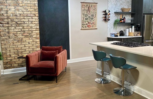 Spacious accommodations with an upscale Oak Park loft, thoughtfully designed for modern comfort and soulful tranquility. Surround yourself with local art and timeless craftsmanship inspired by the neighborhood we call home.