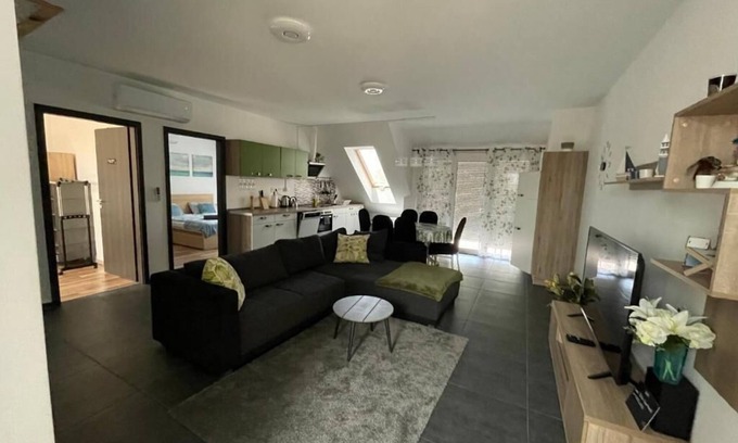 Charming 3-bedroom apartment with AC and WiFi in welcoming Balatonlelle is located in Balatonlelle. Charming 3-bedroom apartment with AC and WiFi in welcoming Balatonlelle provides accommodation, featuring Fireplace/Heating, Barbecue/Outdoor Cooking, Kitchen, among other amenities. This Apartment features Fireplace/Heating, Barbecue/Outdoor Cooking, Kitchen, to make your stay a comfortable one.