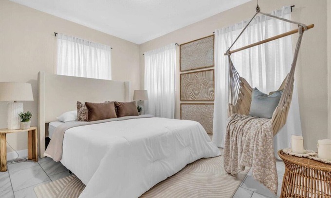 This Tampa house boasts 3 inviting bedrooms - 1 king bed, 1 queen bed, and 1 twin bed. The living room also offers a cozy sofa bed for extra guests. With heating and AC, you'll stay comfortable year-round. The bathroom features a convenient hairdryer and shower. Iron out any wrinkles before heading out to explore the city. We look forward to hosting you at our place.