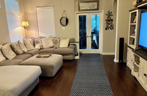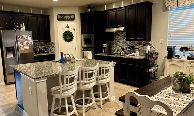 Escape to this adorable house in picturesque Fair Oaks Ranch. With 3 bedrooms, including 1 king bed and 2 queen beds, our place is perfect for a family or group of friends. You'll find all the comforts of home, from AC to WiFi, a hair dryer to an iron, and even a washing machine. Resort like backyard with pool. The 2 bathrooms are equipped with a hair dryer as well. Our place will help you feel at home while you're traveling in Fair Oaks Ranch. So pack your bags and get ready for an awesome getaway!