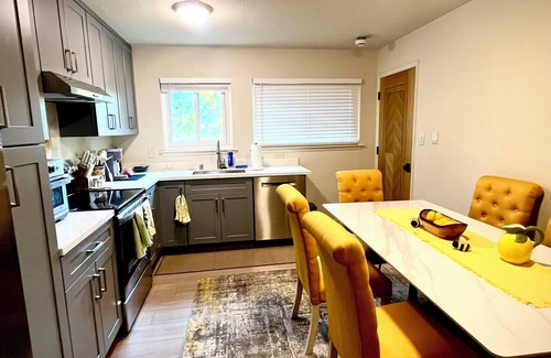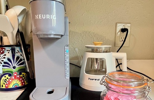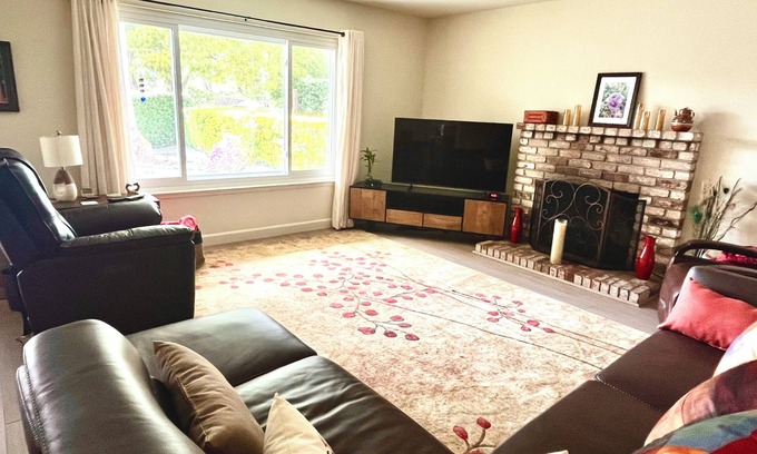 Welcome to this charming house in Montara California. This beautiful property boasts 3 bedrooms, including 1 king bed and 2 queen beds, perfect for a group of friends or family. The Primary King Bedroom has an adjustable base bed. It has a bright en-suite bathroom equipped with its own stand up shower. The other two queen bedrooms, one with an adjustable base queen bed, share a bathroom with an ADA bars equipped bathtub and stand up shower. Both bathrooms peak out onto the Meyer Lemon tree in the backyard. Feel free to help yourself to fresh lemons during your stay. A fully stocked cooking kitchen includes pots and pans, a kitchen knife set, utensils, common spices, dishes, bowls, and glassware. Other appliances include a Keurig coffee maker and pods, a tea pot with several teas, an air fryer/toaster oven and full dishwasher. The backyard has a seating area so you and your kids and/or pet can enjoy the fenced in backyard.