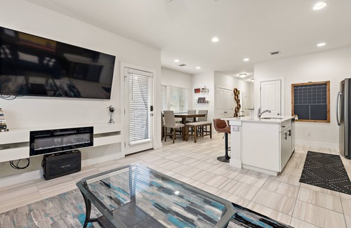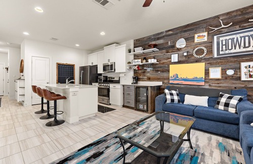 Welcome to your Georgetown townhome—modern, easygoing, and minutes from the Historic Square and Blue Hole Park, with quick toll road access. The open living/dining area flows into a cook-ready kitchen (gas range, microwave, toaster oven, full cookware). Pull up to the island’s three stools or gather at the dining table for six. Mix a drink at the built-in bar with mini-fridge, then head outside: xeriscaped front and back yards make lounging simple, and the built-in gas grill is ready for easy dinners. Sleep comes easy in three queen bedrooms (sleeps six) with a primary ensuite, a shared tub/shower bath, and a downstairs powder room. You’ll have fast Wi-Fi, central A/C, and an in-home washer/dryer. Parking is straightforward: a single-car garage and driveway, plus additional parking down the street. Guests also enjoy access to the neighborhood amenity center with a pool and gym. Bonus: shelves of books throughout for cozy mornings and wind-down nights.