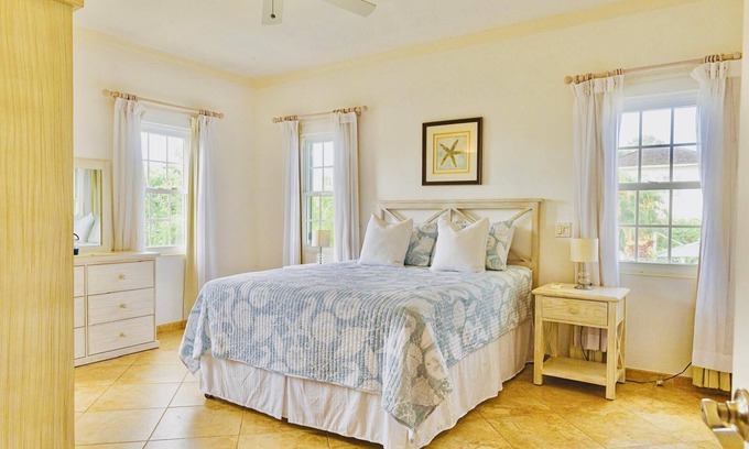 Beautiful Villa in a gated community with spacious open plan living and air conditioned bedrooms with a private pool. This delightful property features 1 king bed, 2 queen beds, and 1 twin bed, perfect for families or groups of friends. With amenities like WiFi, AC, and a washing machine, guests can feel right at home. The 4 bathrooms offer showers and hair dryers for added convenience. Enjoy your time in Porters at our charming townhome.