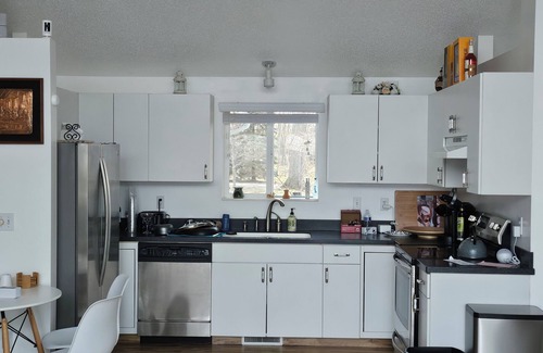 Escape to this cozy Waterfront Cabin, where guests can unwind in the comfort of a 3-bedroom retreat. The bedrooms feature a queen bed, bunk bed, and twin bed, ensuring a good night's sleep for everyone. With amenities like heating, AC, WiFi, and a washing machine, you'll have everything you need for a relaxing stay. The 2 bathrooms come equipped with a bidet, bathtub, and shower for added convenience. Make yourself at home in this amazing cabin - we look forward to hosting you at our place.