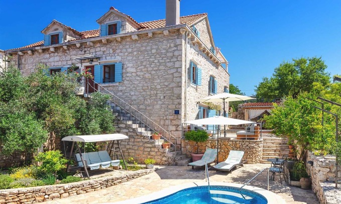 Charming 3-BR Villa for 7 with pool, near the sea has 3 Bedrooms , 2 Bathrooms, and max occupancy of 9 people. The minimum rental for this property is 1 nights, but this can change depending on the season you plan on staying. Previous guests have given good rated it, and VRBO labeled it a top-rated Villa because of the excellent services rendered by the owner or manager of this Villa, and has consistently provided great experiences for their guests. Most families or guests that use it recommend it to their friends and some of them are repeat guests. Villa has a friendly neighborhood, and the Milna has interesting places to visit. If you want to learn more about the Villa in Milna, such as places to visit and things to do nearby, you can check below to learn more.