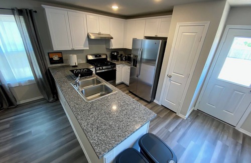 Consider this house your home away from home while you visit Converse. This cozy property features 3 bedrooms, including a queen bed, crib, bunk bed, and full bed. With 2 bathrooms equipped with a hair dryer and bathtub, guests can relax and unwind in this tranquil space with a huge yard that is great for pets or a BBQ anytime of year. Experience what Converse has to offer with a stay at our house. Right off Loop 1604 and close to I-35 and I-10 makes this a convenient home close to anywhere you want to go near San Antonio, New Braunfels or Austin.